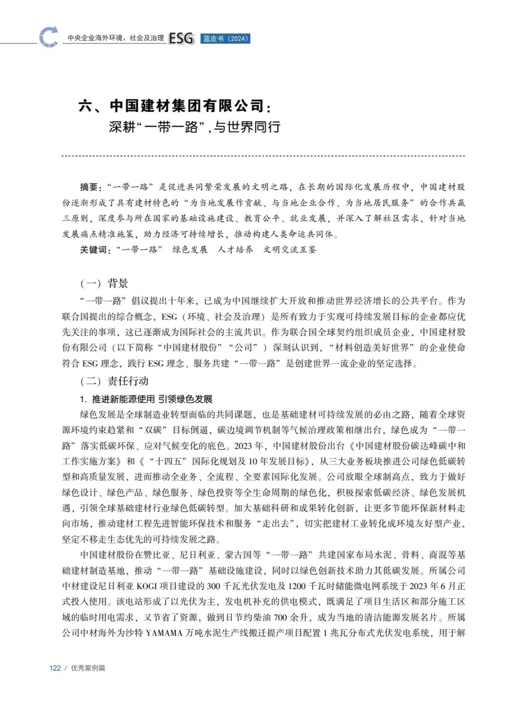 《深耕“一带一路”,与世界同行》入选《中央企业海外环境、社会及治理(ESG)蓝皮书(2024)》海外ESG综合优秀案例