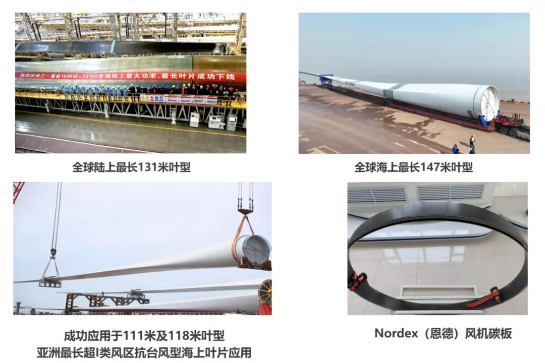 在新能源领域,碳纤维是“绿色动能”的重要支撑。风电方面,中复神鹰的SYT45F-48K拉挤板应用于131米陆上风电叶片、147米海上抗台风叶片,相同载荷下能减少10%的材料用量;光伏热场领域,中复神鹰的产品占比超60%,预制体龙头金博、天鸟的用量中,90%以上来自中复神鹰;氢能领域,中复神鹰的SYT49S-24K碳纤维用于Ⅲ型、Ⅳ型储氢瓶,既保证储氢密度,又守住安全底线。