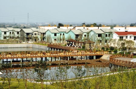 会议当天,与会者还参观了北新集团成都青白江区清泉镇花园村项目。该项目是由北新集团全资子公司北新集成房屋有限公司与成都市青白江区政府合作开发的统筹城乡住宅项目,占地140亩,可容纳266户。作为青白江新农村建设的示范项目,同时也是成都市首批新型轻钢节能建筑,项目自开工起,便受到社会各界广泛关注。