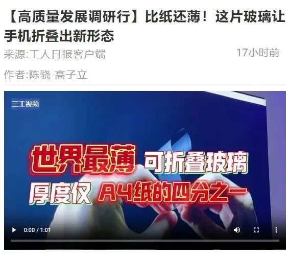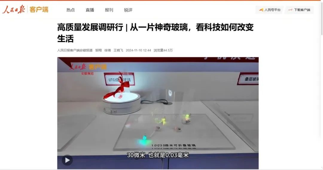 现场查看了超薄柔性玻璃等最新科技创新成果