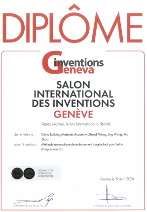 近年来,中国建材总院在3D打印领域接连取得创新成果。在2024年举行的第49届日内瓦国际发明展上,中国建材总院团队自主研发的“基于3D打印混凝土的自动纵向配筋技术”获得金奖。