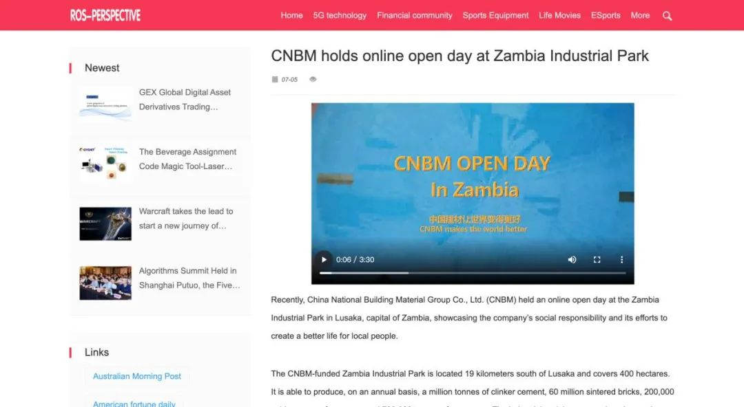 当前国内疫情多点散发,我们严格落实疫情防控要求,将今年5个国家69个城市93家企业报名参加的“善用资源”开放活动,调整为8月26日至10月26日期间开展,并鼓励进行“云开放”。官微先来一波境外预热,境外开放的4家企业涉及建材家居连锁超市、建材工业园、玻纤制造基地、工程技术服务。近日,中国建材赞比亚工业园举办第二届“云开放”活动,通过镜头生动展现工业园扎根当地社会,践行社会责任,推动合作共赢,搭建中赞友谊桥梁的积极成效。