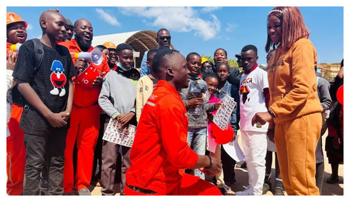 参观结束后,来宾与孩子们共同开启了互动游戏环节。期间还发生了一段温馨小插曲,来自中国建材赞比亚工业园综合管理部的Dicrson Banda在活动现场向相恋多年的女友进行惊喜求婚,在场员工和来宾共同见证了这一甜蜜时刻。众多的赞比亚建材水泥人也像Dicrson Banda一样,正用智慧与汗水创造着属于自己的幸福生活。本次开放日活动在轻松欢快的氛围中完美收官。