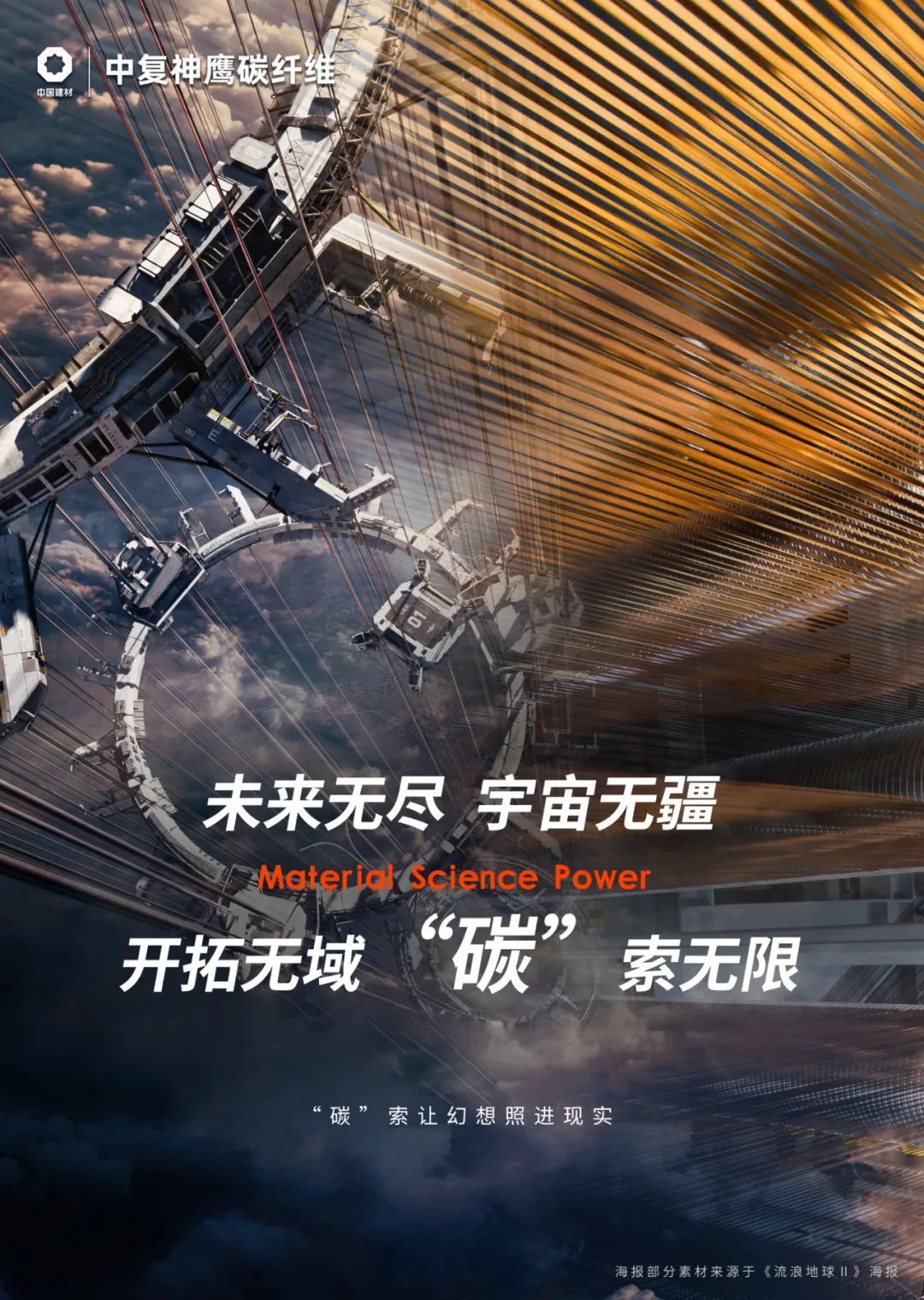 《流浪地球》作者说:“太空电梯最大的障碍是它的材料,要把一根钢索从地球延伸到三万公里高空,目前我们强度最高的材料就是碳纤维。”这个任务,交给我们!高性能碳纤维强度是普通钢材的10倍,具有极高的耐磨性和耐腐蚀性,可以有效抵抗外界环境的侵蚀作用。中复神鹰定不负众望,为航天强国贡献力量,助力太空“天梯”在将来成为现实!