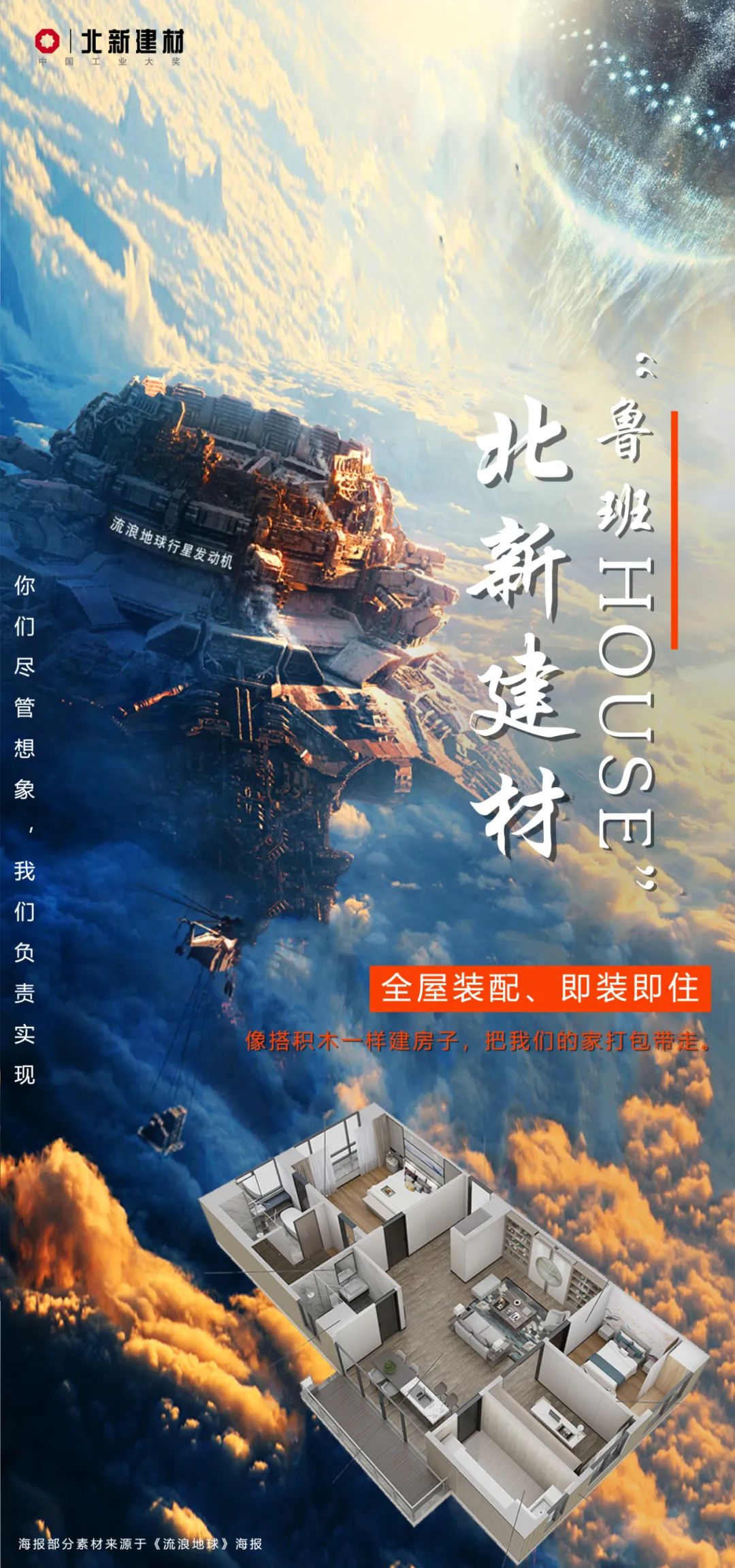 《流浪地球2》中“把地球打包带走”是一种乌托邦式的科技幻想。在现实中,人类对建筑的探索也从未停歇。北新建材“鲁班HOUSE”,可以实现个性化设计、工厂化生产,全屋装配、即装即住。像搭积木一样建房子,我们的家也可以随时随地“打包带走”。