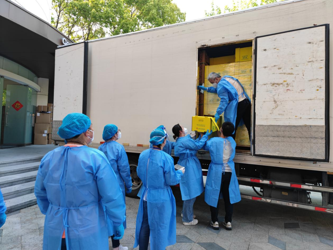 上海基地全体管理人员在刘元军的带领下支援车间生产、外出跟随蔬菜配送。每天一早处理完手头工作,便穿上防护服跟随物流车辆进行配送,在路上继续安排路线、联系客户收货、搬运货物。防护服穿脱不便还闷热,他们不敢多喝水,更没时间吃饭,从凌晨五点开始备货、装车、送货,一直持续到第二天凌晨两三点。每日向市场供应“绿行者”品牌果蔬4万余份,除供应各大商超及线上平台外,在多个小区开展团体配送,确保新鲜果蔬当天端上市民餐桌。