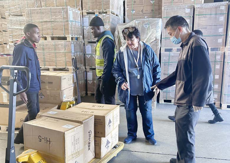 目前,南非海外仓已搭建起以约翰内斯堡为总部,开普敦、德班和伊丽莎白港为分仓的“1+3”市场布局,仓储规模达3万平方米,围绕分布式光伏+储能等新能源产品链进行分销及服务,并为客户提供属地化的售后服务,形成以南非为核心,辐射津巴布韦、赞比亚、博茨瓦纳、纳米比亚等周边区域国家的发展格局。
