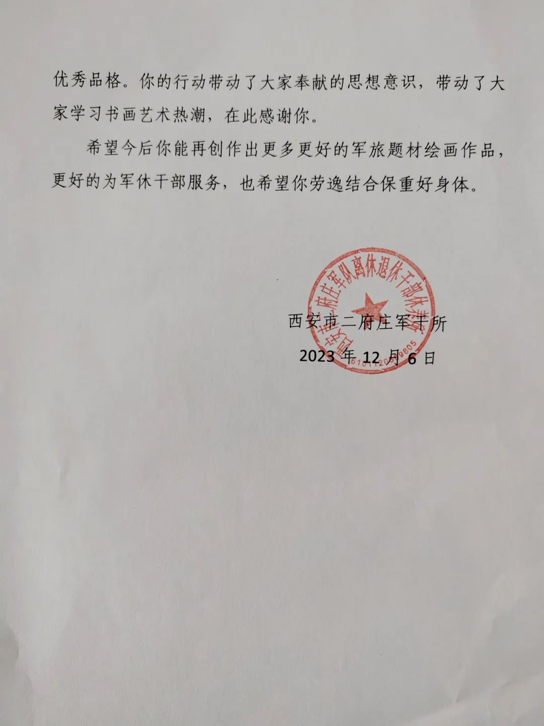 成绩的获得是你受到了革命传统思想的教育向英模学习的结果,也是多年艰苦野外地质工作锻炼了你钢铁般的意志、苦练绘画技能的结果。你的行动引领大家奉献的思想意识,带动了大家学习书画艺术热潮,感谢你的付出。