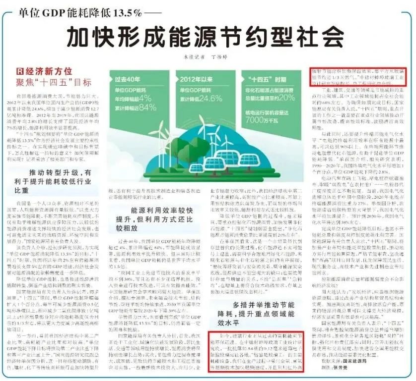 我国是能源消费大国,节能潜力巨大。“十四五”规划纲要将“单位GDP能源消耗降低13.5%”作为经济社会发展主要约束性指标之一。在实现碳达峰碳中和目标背景下,怎么理解这一指标的意义?如何保障顺利实现?人民日报记者采访了相关部门和专家,并采访了中建材蚌埠玻璃工业设计研究院,作为“多措并举推动节能降耗、提升重点领域能效水平”的典型案例。