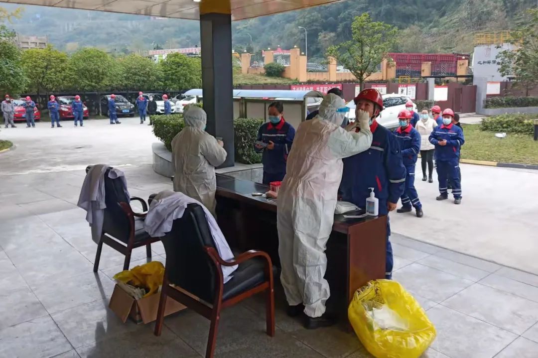 时间紧、任务重,新的一轮疫情波及不少省市县城市,公司党支部积极与漩口镇医院沟通。2021年11月9日,医院医护人员组成采样工作组走进公司,开展核酸采样检测工作,完成对公司和外协单位共计152人次的核酸采集。