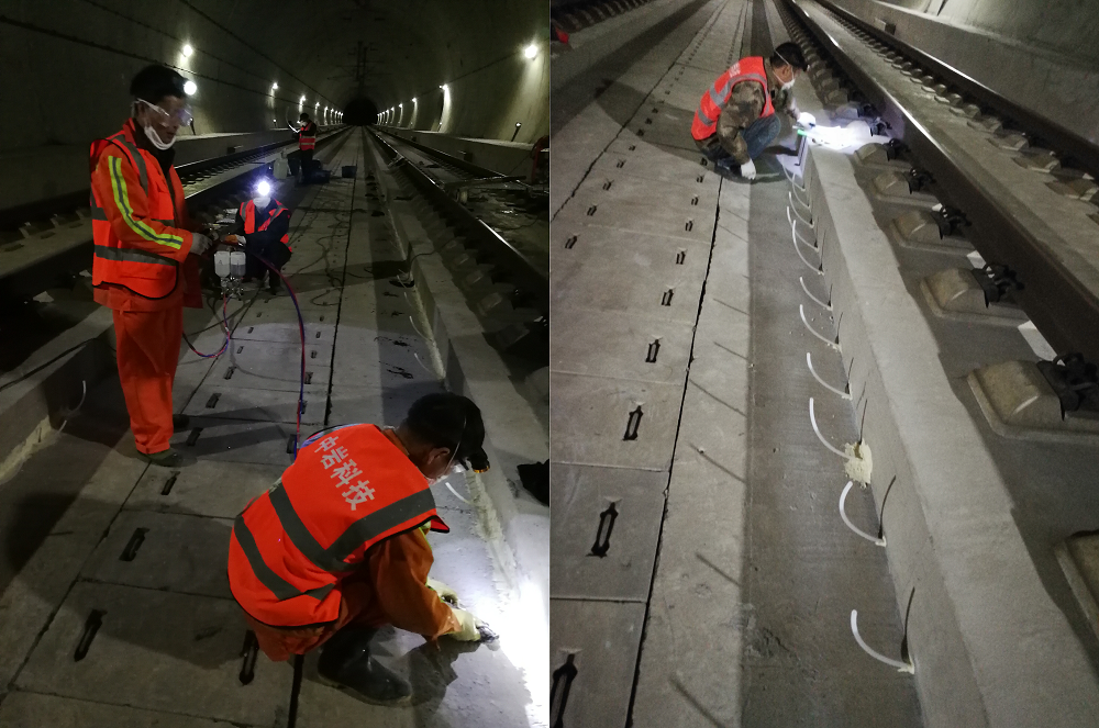 高铁无砟轨道在冻融循环、化学侵蚀、高频动荷载等环境及荷载作用下,会产生裂缝、离缝、脱空、沉降等病害,影响轨道的平顺性。及时的保养维护可以有效延长轨道的使用寿命。然而,日常繁忙的铁路运输留给工程维修作业的天窗时间并不长,一些疑难杂症的处理就要依靠“特效药”。