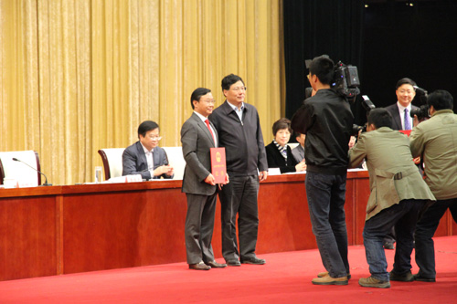 2013年4月12日,合肥市隆重召开科技创新大会,安徽省委常委,合肥市委书记吴存荣亲自给我院副院长,总工程师包玮同志颁发合肥市科学技术杰出贡献奖(全市2名)。