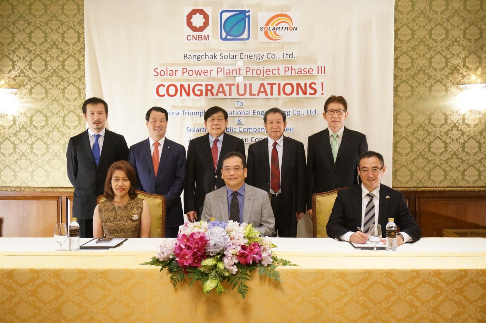 9月14日下午,中国建材工程投标的泰国石化Bagchak Solar Energy大型光伏地面电站总承包项目授标签字仪式在泰国曼谷举行。该项目是泰国乃至东盟地区***的光伏电站项目,也是中国公司在东盟总承包建设的***的光伏电站项目。