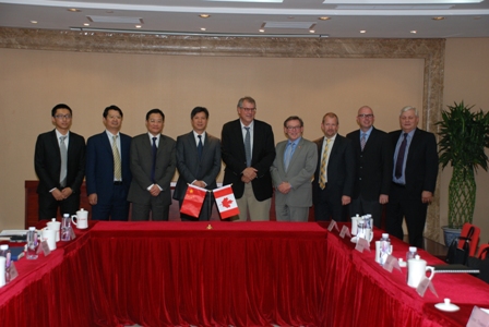 加拿大不列颠哥伦比亚省林业厅幕僚长Bruce Strongitharm、交流部主任Vivian Thomas、不列颠哥伦比亚省特别代表Ben Stewart、林创中国总经理窦伟、加拿大林屋公司副总裁夏天;北新集团技术中心经理张士元等参加会谈。