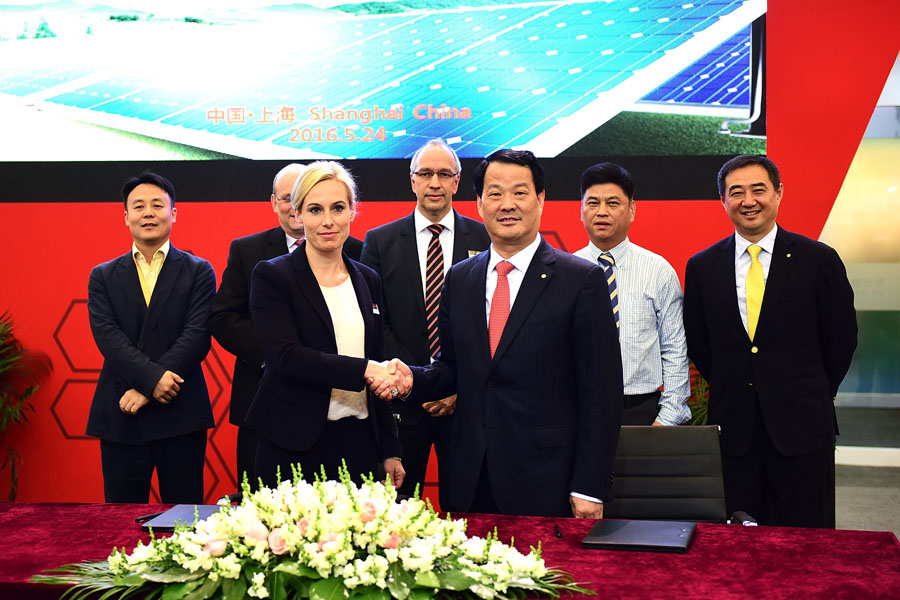 5月24日,凯盛科技在上海2016国际太阳能产业及光伏工程展览会现场举行光伏项目集中签约仪式暨凯盛绿色能源及房屋发展基金启动仪式。日韩无码 总经理助理、国际合作部总经理卫锋,凯盛科技总经理、中国建材工程董事长彭寿与各合作单位领导共同出席活动。
