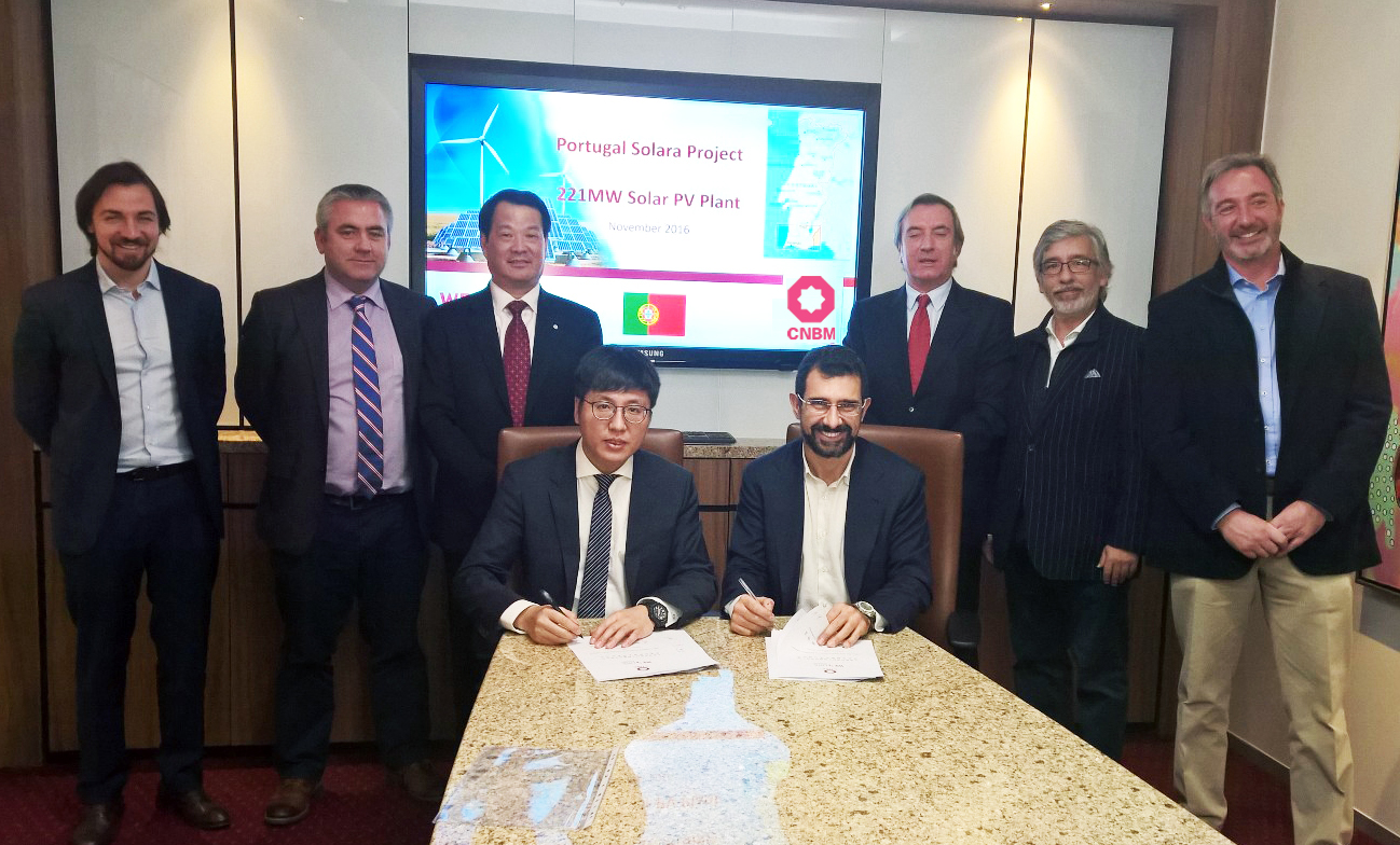 来源:国际合作部 发布时间:2016-11-2311月22日,中国建材所属中国建材工程在英国签订葡萄牙Solara4 Vaqueiros 221兆瓦大型光伏地面电站EPC总包合同,合同总金额达2亿欧元;同时还签署了在英国开发建设加能源绿色房屋小镇的战略合作协议。