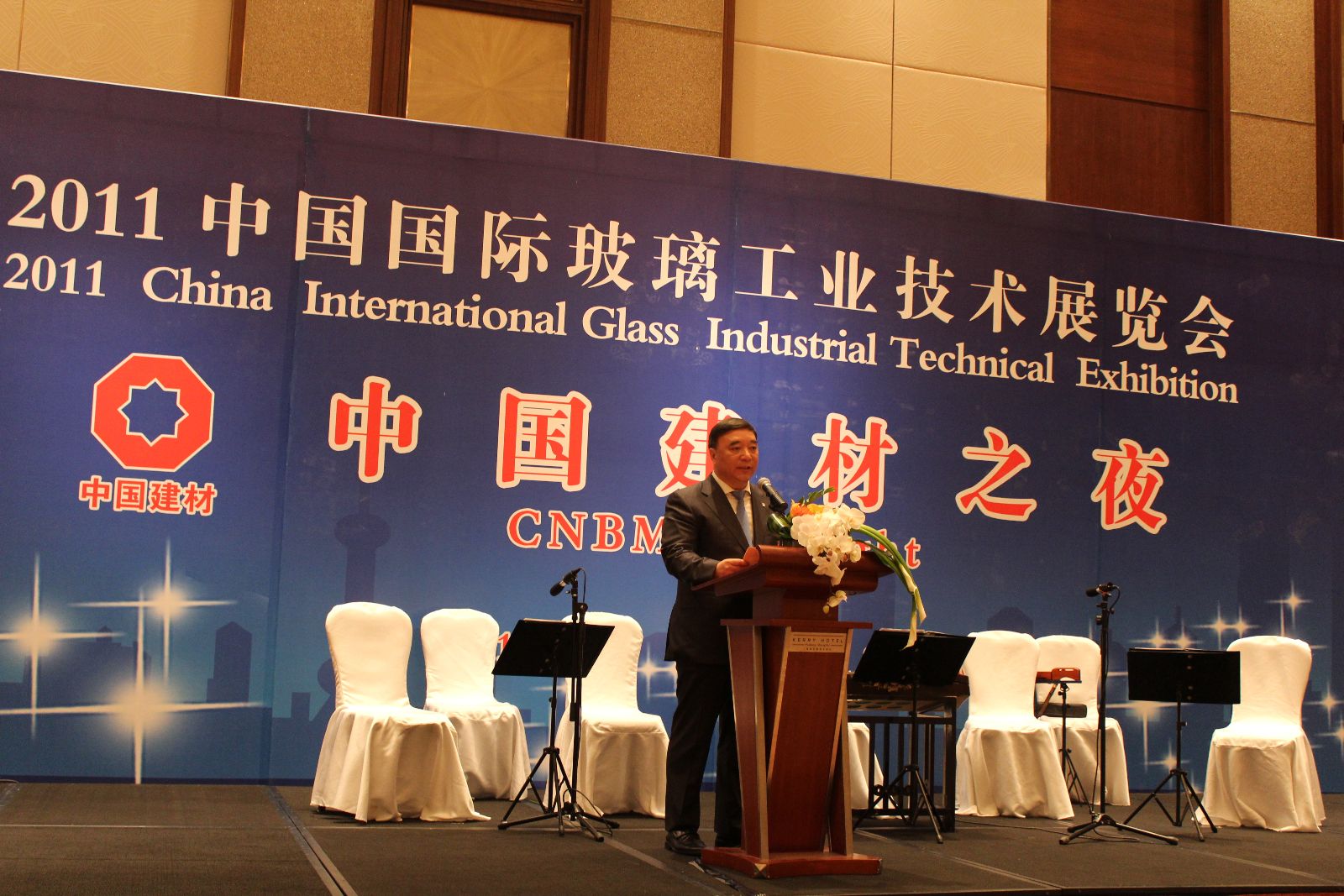 中国建材联合会名誉会长、中国硅酸盐学会理事长张人为发表讲话,他代表联合会会、代表展会主办方感谢中国建材举办的晚宴,近年来,中国玻璃工业发展迅速,其中尤以中国建材的发展最为瞩目,成绩斐然,今晚各大玻璃相关企业集团云集,希望在座的企业通过玻璃展会这一平台加强交流合作,为中国玻璃工业的再次腾飞做出应有的贡献。