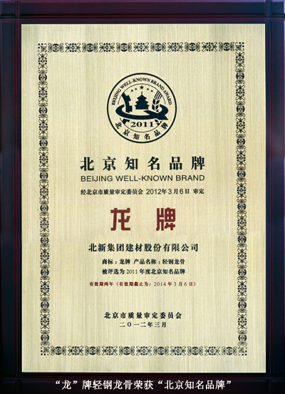 龙牌轻钢龙骨荣获“北京知名品牌”