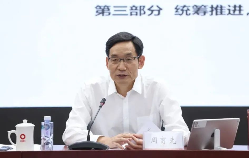 周育先在讲话中充分肯定了集团上半年取得的成绩,代表集团对各级领导班子的拼搏进取、全体干部员工的辛勤努力表示衷心感谢。他讲到,上半年国内外环境复杂性、不确定性加剧,多重风险挑战交织叠加,集团坚持稳字当头、稳中求进,团结奋进,攻坚克难,统筹推进防风险、促改革、抓创新、强党建等各项工作,取得高质量发展的新进展新成效。工作成绩主要体现在五个方面。一是稳中向好,经营业绩不断巩固,充分发挥了央企国民经济顶梁柱作用。二是加速转型,产业质量不断优化,聚焦投资公司定位,强化战略管理,突出主责主业,夯实“三足鼎立”格局。三是强化创新,发展动力不断强劲,坚持以科技创新为核心的全面创新,为加快建设世界一流企业注入强大动力。四是深化改革,活力效率不断提升,坚持改革赋能发展,“规定动作”强化落实,“自选动作”持续探索。五是党建引领,政治优势不断彰显。坚持以政治建设为统领,在深度融入、人才建设、思想文化建设、全面从严治党、履责践诺等方面取得优异成绩。