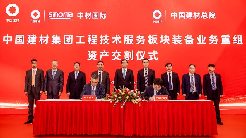 在仪式上,中材国际与中国建材总院签署了资产交割确认书。