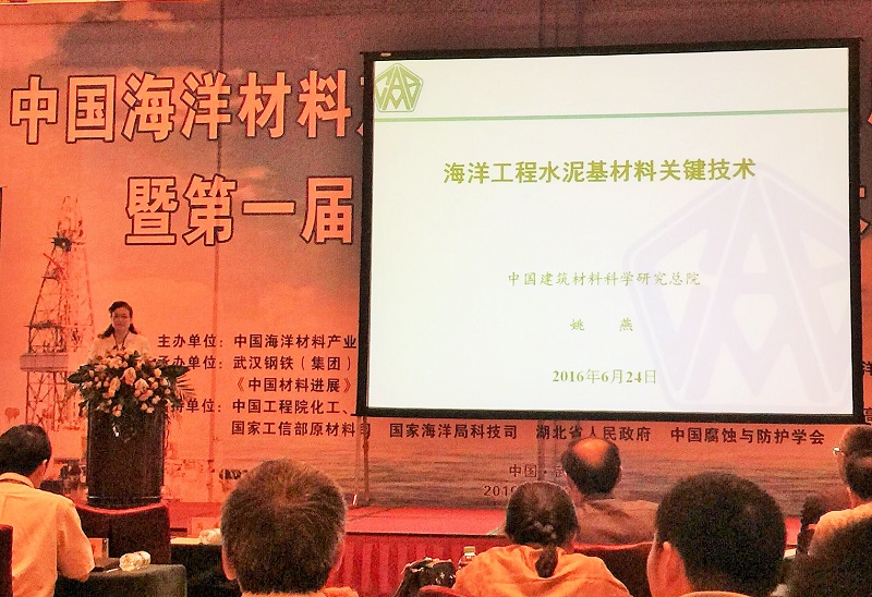 6月24日,“中国海洋材料产业技术创新联盟”成立大会在武汉召开。中国建材总院凭借在海洋工程水泥基材料方面深厚的研究基础和成果转化的优势,参加该联盟并成为副主席单位。日韩无码 副董事长、中国建材总院院长姚燕应邀出席会议,并作为特邀报告人作了题为“海洋工程水泥基材料关键技术”的报告。