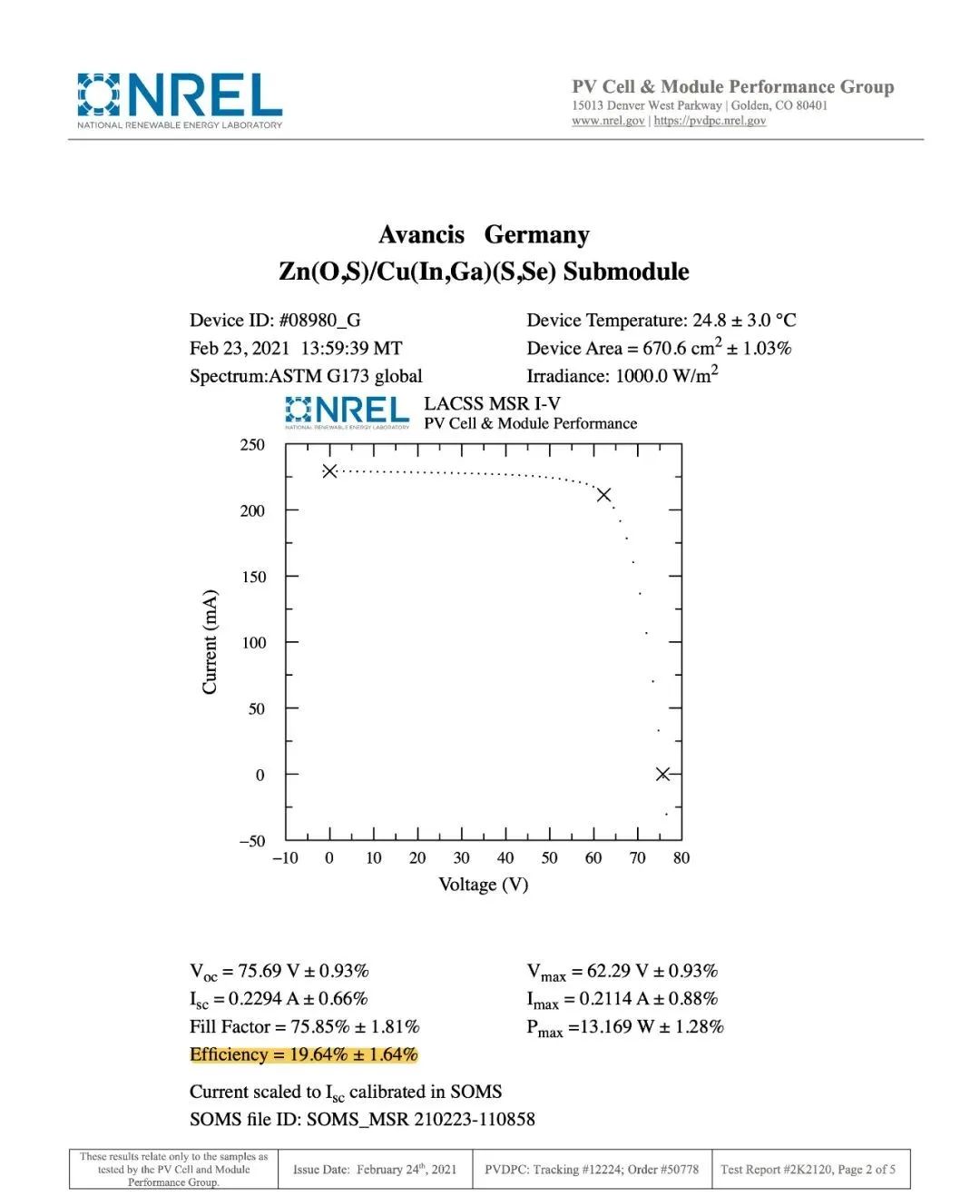 19.64%!我们铜铟镓硒光电转换率再次打破世界纪录