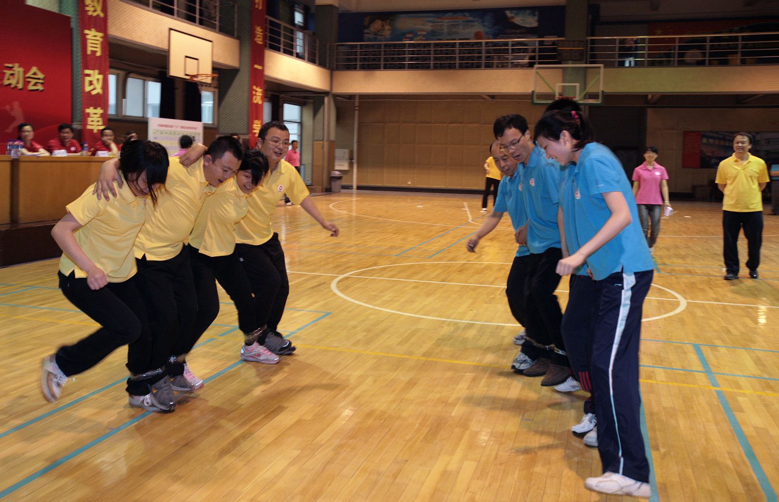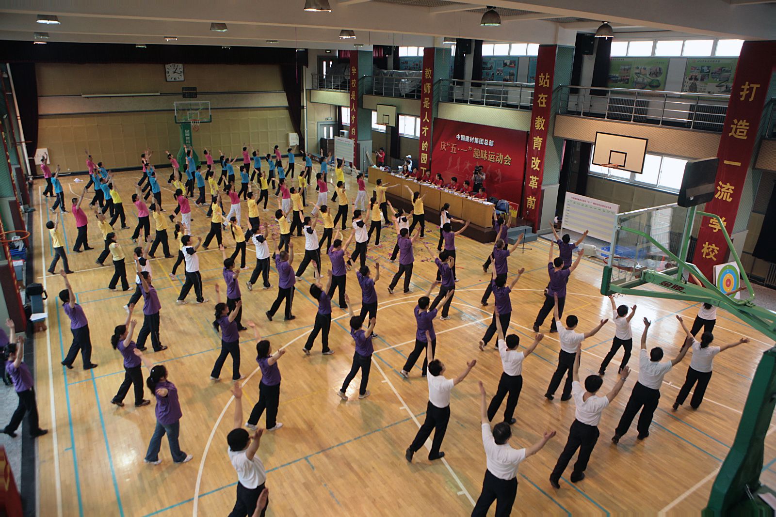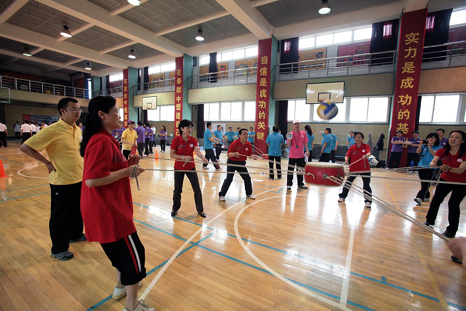 集团公司领导组成一队参加比赛,并进行了广播操集体表演,赢得广大员工阵阵喝彩。他们与员工真正融为一体,营造出“中建材一家”其乐融融、健康向上的温馨氛围。各参赛队也都激情饱满,奋勇争先。大家群策群力、相互配合、相互鼓励,尽团队***努力完成每个比赛项目,并力争取得***成绩。比赛现场充满了欢声笑语和加油喝彩声,处处洋溢着团队的热情和运动的激情。
