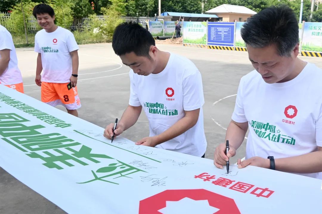 在歌曲《美丽中国》的优美旋律中,咸阳陶瓷院“美丽中国 建材人在行动”篮球赛拉开序幕。绿色队、低碳队、环保队、节能队四支参赛队伍齐装列队,带着对绿色环境的敬意,对绿色生活的初心,对绿色发展的责任,在“美丽中国 建材人在行动”条幅上集体签名,许下绿色承诺。