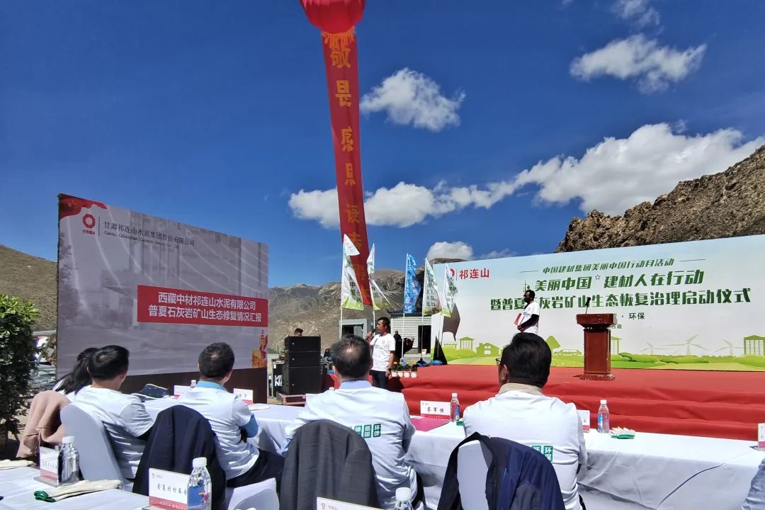 天津矿山西藏公司总经理顾磊做表态发言,表示要与祁连山水泥集团一同做“两山”理论的坚定拥护者和践行者,做生态文明建设者、绿色发展排头兵,重视自然生态恢复,让高原的天空更蓝、矿山更绿。