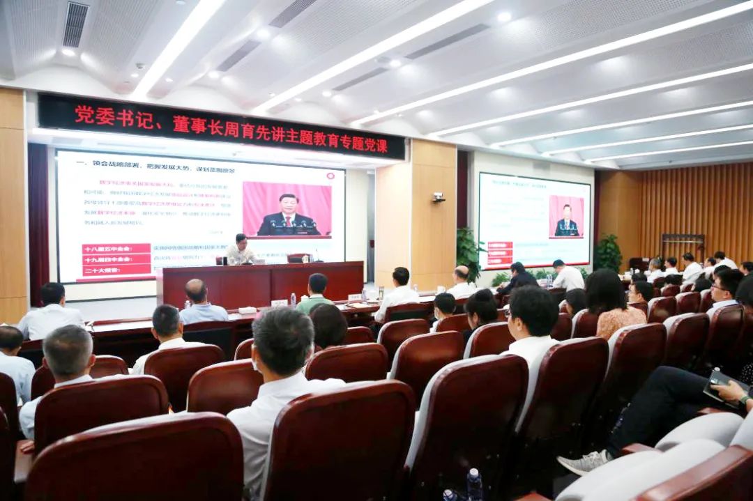 在专题党课中,周育先牢牢把握用习近平新时代中国特色社会主义思想凝心铸魂这个根本任务,紧扣“学思想、强党性、重实践、建新功”这一总要求,围绕集团数字化转型蓝图,解读了集团数字化转型的指导依据,分析了集团数字化转型的问题对策,指出了集团数字化转型的突破路径,明确了集团数字化转型的潜在价值,系统阐述了集团数字化转型的系统思维、实践路径和内在逻辑。他强调: