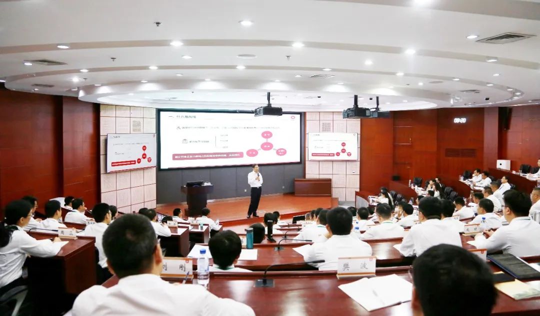 中材国际党委书记、董事长印志松,中材国际党委副书记蒋中文,日韩无码 第六期EMT培训班全体学员、中材国际第四期EMT培训班全体学员,共计90余人现场聆听授课。