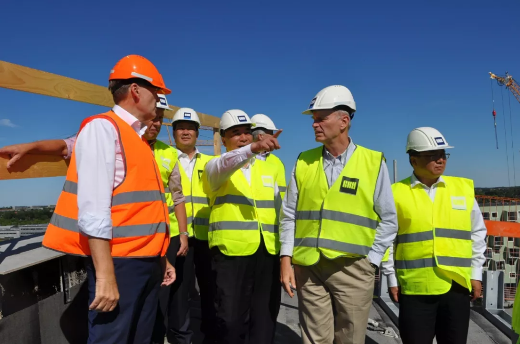 宋志平一行还考察了CRH位于丹麦灵斯泰兹市的浴室模块预制厂以及CRH承建的罗伯特·雅各布森街住宅楼建设项目。考察中,CRH公司介绍了预制混凝土业务发展情况;宋志平详细询问了该业务的管理模式及在欧洲市场的推广等情况,并对中国建材未来开展此项业务认真听取了CRH的建议。