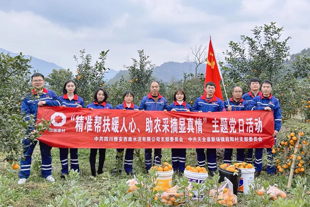 四川雅安西南水泥党支部组织党员到天全县新场镇前阳村开展“精准帮扶暖人心  助农采摘显真情”主题党日活动,帮助当地村民采摘黄果柑1000余斤。