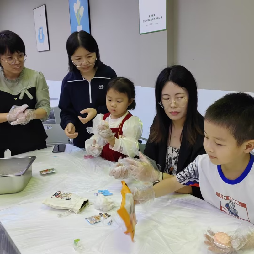 活动精彩集锦视频 苏非小课堂 公司为小朋友们“量身定制”非矿知识小课堂,增加了大家对苏州非矿院和非金属矿的了解,以“沉浸式”体验苏非人的工作环境和工作成果。 同时,通过实地参观“国家工程中心”,大家零距离感知非金属矿的特性和应用领域。 亲子互动 现场参观结束后,进行了亲子互动游戏:快乐寻宝和你比划我猜,在轻松愉悦的氛围下,孩子们大方上台表演。 随后,小朋友们发表了活动感想,觉得爸爸妈妈的工作很有意义、很伟大,为有这样的爸爸妈妈而骄傲自豪! 中秋月饼DIY 为体验中秋“团圆味”,大家共同制作冰皮月饼,孩子们搓揉月饼皮,放上馅料慢慢旋转封口,家长们也没闲着,把模具粘上糯米粉,将孩子们搓揉好的面团放进模具里压制出花。很快一个个可爱诱人的冰皮月饼就制作出来了,有的小朋友更是迫不及待地品尝自己的劳动成果,脸上都露出了喜悦的笑容。 此次善用资源日开放活动,让公司的家属们进一步加深了对非金属矿、绿色矿山的认识,并引导孩子们树立理想,做志向远大的好少年。 面向未来,苏州非矿院将以此次活动为契机,积极践行“绿水青山就是金山银山”理念,始终坚持“善用资源 服务建设”理念,持续巩固和深化创新体系,全面推进绿色发展,以更开放、更绿色、更智能的姿态,全力打造国际一流非金属矿物材料产品研发和技术创新企业。
