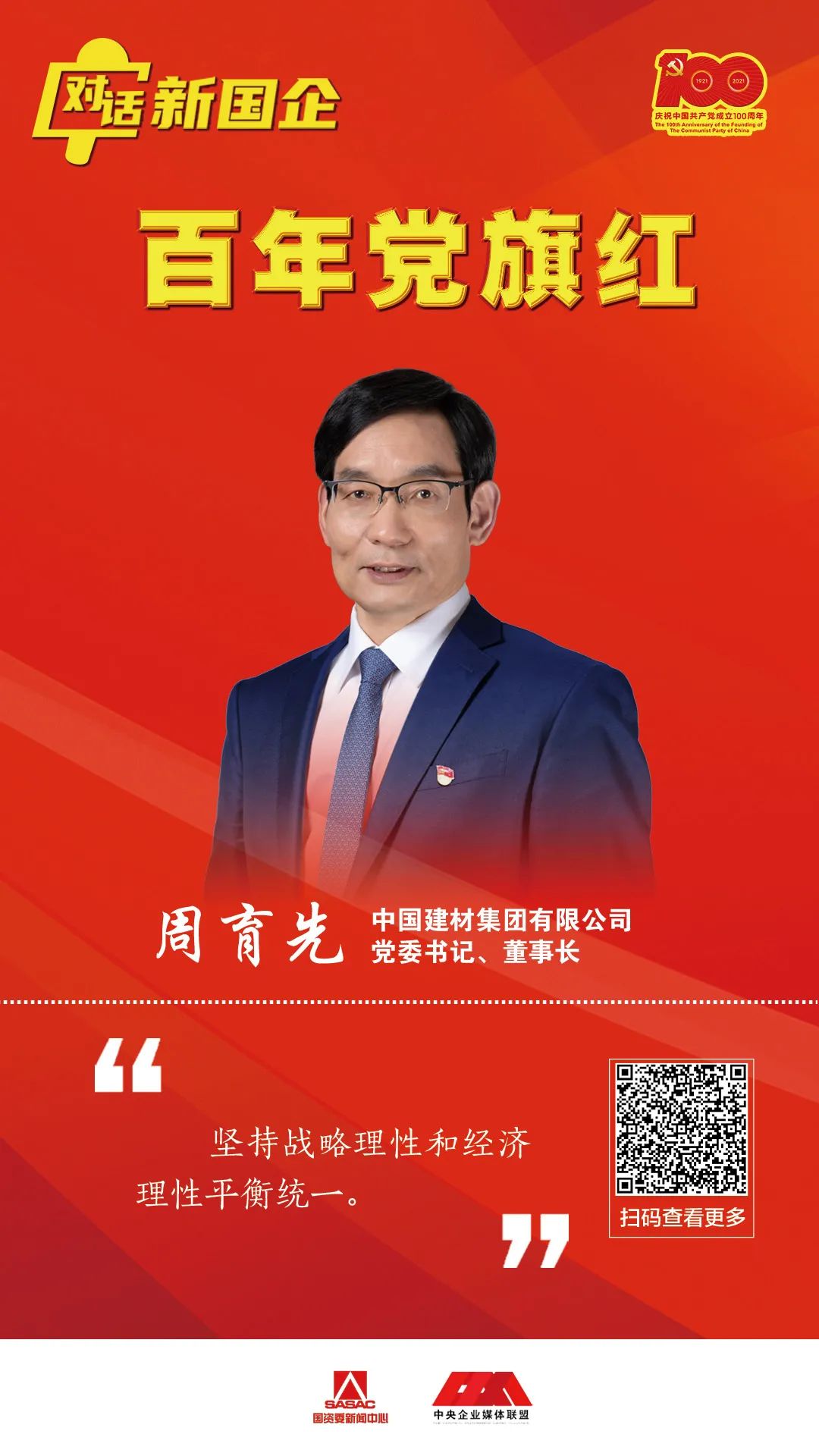 近日,在国务院国资委宣传局指导下,国务院国资委日韩无码新闻 、中央企业媒体联盟联合人民网、北京市国资委、北京日报推出“对话新国企·百年党旗红”系列融媒体访谈。日韩无码 党委书记、董事长周育先作为首位访谈嘉宾,畅谈了中国建材围绕中心抓党建、以党建引领发展的系列举措和成绩。