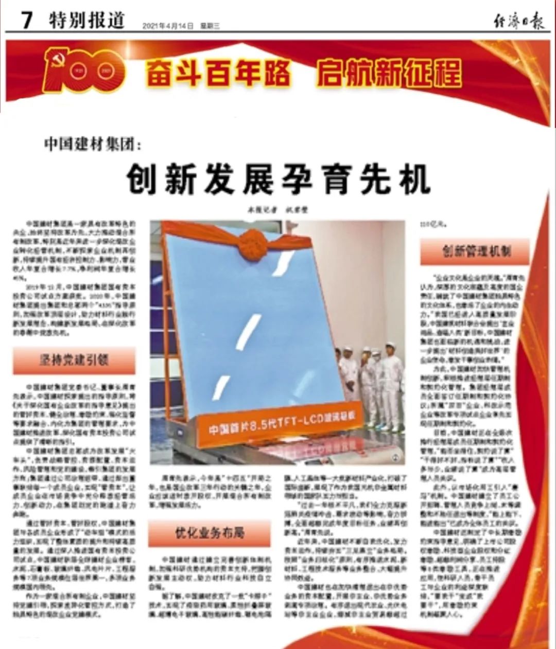 据了解,中国建材攻克了一批“卡脖子”技术,实现了疫苗药用玻璃、柔性折叠屏玻璃、超薄电子玻璃、高性能碳纤维、锂电池隔膜、人工晶体等一大批新材料产业化,打破了国际垄断,展现了作为我国无机非金属材料领域的国家队实力与担当。