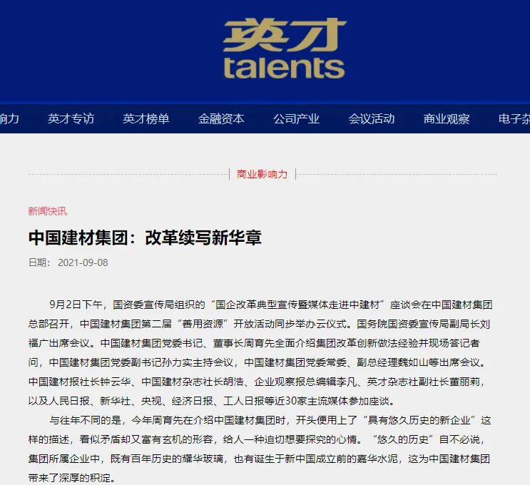 国企改革创新典型宣传暨媒体走进中建材报道集锦③