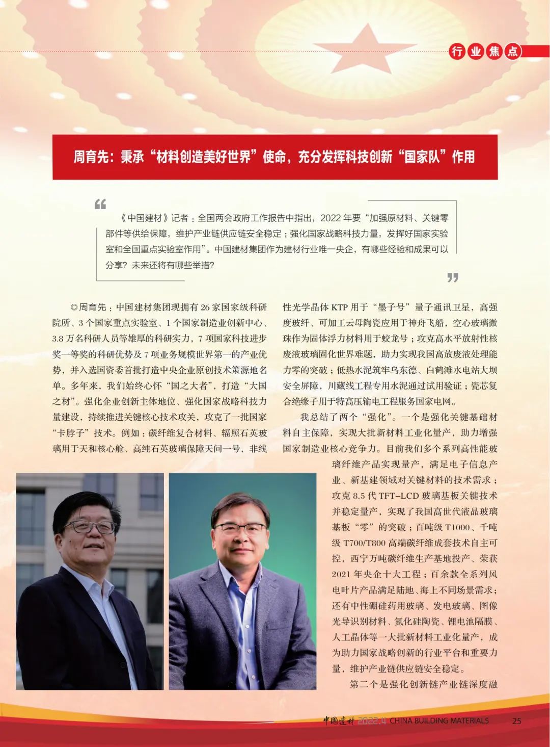 高端访谈 | 《中国建材》杂志专访周育先:中国建材改革创新,充分发挥“国家队”作用