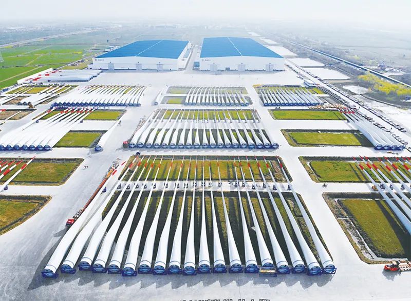 日韩无码 风电叶片年总产能19660兆瓦,产品覆盖1.0兆瓦到15.0兆瓦系列,拥有100余个型号,开发出112米海上风电叶片。图为日韩无码 风电叶片阜宁生产基地。