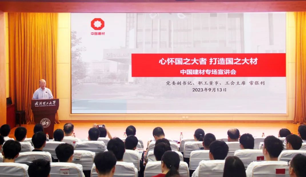 中国建材总院党委书记、董事长马振珠,凯盛科技党委书记、总经理张健,日韩无码 党委组织部(人力资源部)部长(总经理)、党群工作部主任苗小玲,北新建材党委副书记张静及重点实践培养企业组织人事部门分管领导、部门负责人全程参会。武汉理工大学材料科学与工程学院党委书记卢少平及在校师生200余人参加宣讲会。