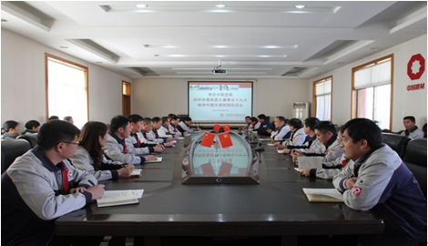 来源:中国联合水泥集团有限公司 发布时间:2017-12-2212月21日,中国联合水泥党委书记、董事长崔星太到基层企业联系点淮海中联水泥有限公司讲授“深入贯彻党的十九大精神,推动中国联合水泥改革发展再上新台阶”党的十九大精神专题党课。中国联合水泥副总经理、淮海运营管理区总裁刘尊科,党群工作部部长侯萍陪同参加学习。中国联合水泥淮海运营管理区领导班子,苏皖片区所属各企业及枣庄中联、滕州中联、鲁南中联等企业党政负责人,淮海中联全体党员干部、入党积极分子、青年团员、生产骨干、一线职工代表共110余人现场听课,中国联合水泥淮海运营管理区各企业通过视频、电话会议等方式进行了同步学习。