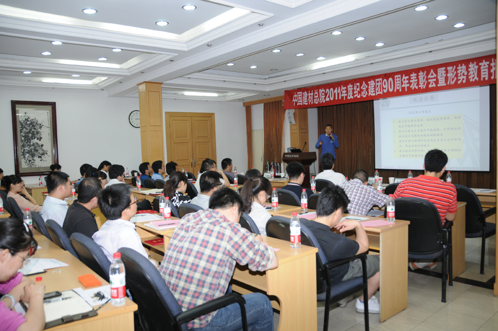 来源:中国建筑材料科学研究总院 发布时间:2012-05-255月10日下午,中国建材总院纪念建团90周年2011年度共青团表彰大会暨形势教育报告会在主楼报告厅举行,总院党委书记、副院长王益民,党委副书记、纪委书记刘春山,院工会主席张喜福,院长助理、人力资源部部长王海龙和职能部门负责人出席会议。表彰大会由院团委副书记高颖主持。