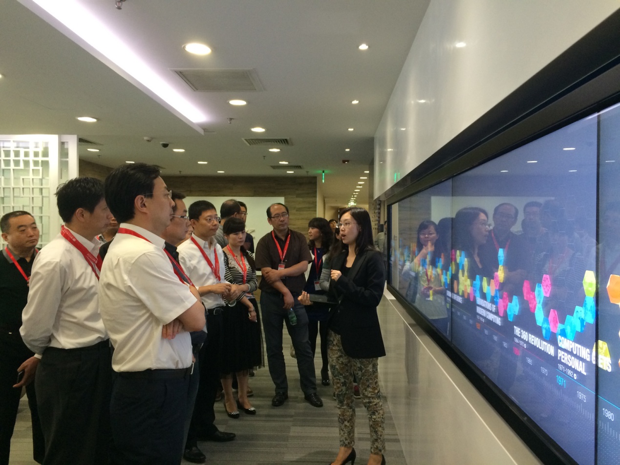 随后,学员们在工作人员的引导下,饶有兴致地参观了客户体验中心,认真观看了零售创新、Watson应用等展示,在浸入式环境中了解到大数据在医疗、商业、交通、体育等社会各个领域的广泛应用前景和精细化的社会服务功能。利用IBM Watson针对人类自然语言的意义和语境分析能力,快速处理海量的非结构化数据并实时进行分析,挖掘和识别客户需求,并为客户制定个性化的服务和购买意见的展示,给学员们留下了深刻印象。