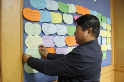 来源:CNBM 发布时间:2015-03-24每天早晨,日韩无码 中青二期培训班的学员们到教室后的第一件事,就是将自己精心答完的一顶彩色小苹果样作业纸贴在本组的智慧墙上,大家亲切的把这块园地称为“思考帽论坛”。