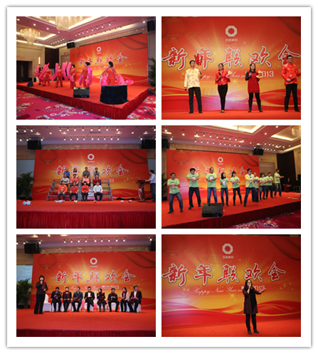 联欢会上,集团公司总部各部室和资产公司经过认真、精心的准备,为大家献上了精彩纷呈的节目。资产公司一曲歌舞《好日子》拉开了演出序幕,祝愿集团迎来2013又一丰收喜悦之年;科技部四人唱《冰糖葫芦》,唱出了新年的祝福和中建材一家亲的温暖;企管部创意表演《格子》,大胆运用光电手段,演绎了职工们快乐工作、幸福生活的美好画面;国际、企管、投资部联合创作的舞蹈《欢乐神曲》,串烧时下最流行舞曲,将晚会推向了高潮;人力资源部集体脱口秀《会谈十年》,带领大家重温了集团十年来发展的辉煌业绩和美好回忆;审计、投资、纪检部门带来的三曲联唱《青春旋律》,展现了集团青年充满活力、蓬勃向上的精神面貌;党群部杂谈《天气预报》,用独特的视角和诙谐的语言回顾了2012年集团的发展成就和国家的大事要事;财务部舞蹈《西班牙火焰》,仿佛将大家带进了西班牙皇宫,感受着异域似火的热情;新员工们为大家带来了精彩的卡通人物走秀,充满创意的造型与自信的步伐走出了新员工的激情与活力;办公室的歌伴舞《阳光路上》,欢快的舞蹈和嘹亮的歌声表达了广大员工对集团未来发展的美好祝愿。形式多样、内容丰富的节目把联欢会不时推向一个个高潮,掌声喝彩声不断,欢声笑语连成一片。