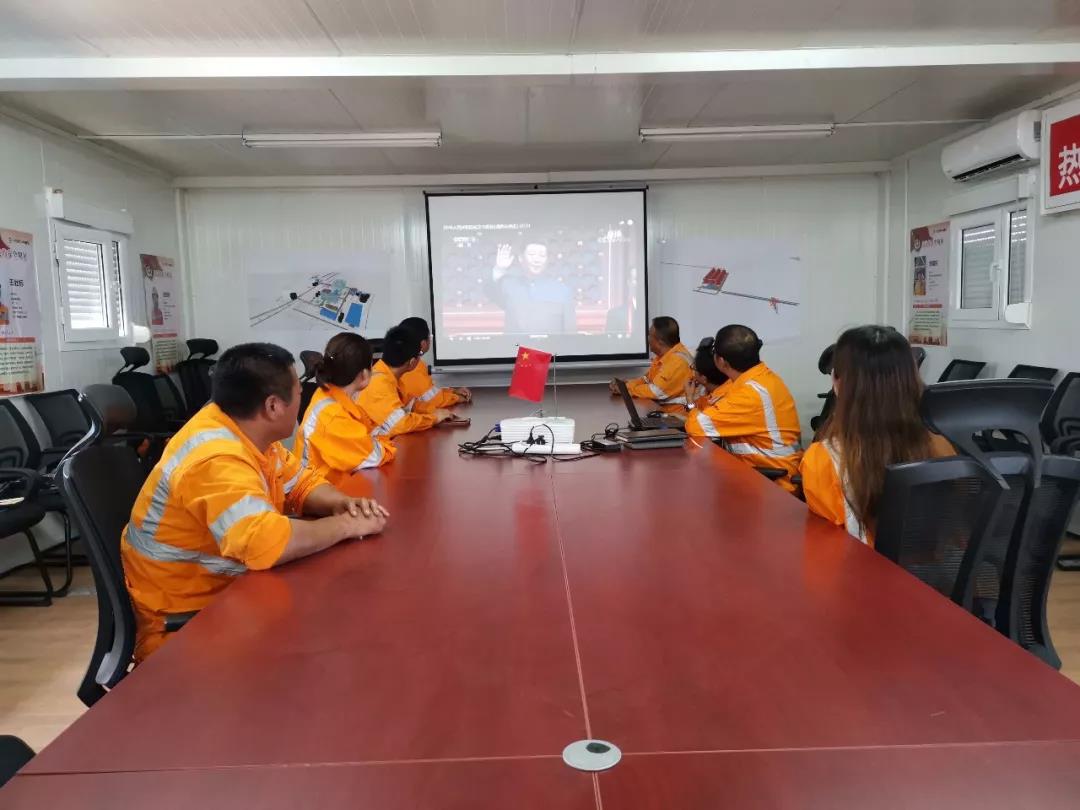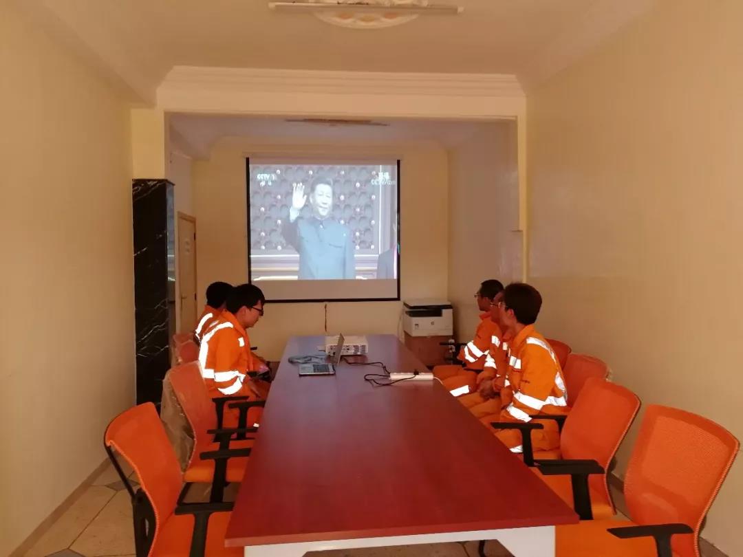 中材建设喀麦隆项目部组织全体员工观看庆典,每位员工都深受鼓舞,心情无比激动,为我们伟大的祖国感到自豪,为我们作为中国人骄傲,祝愿伟大的祖国母亲繁荣昌盛!