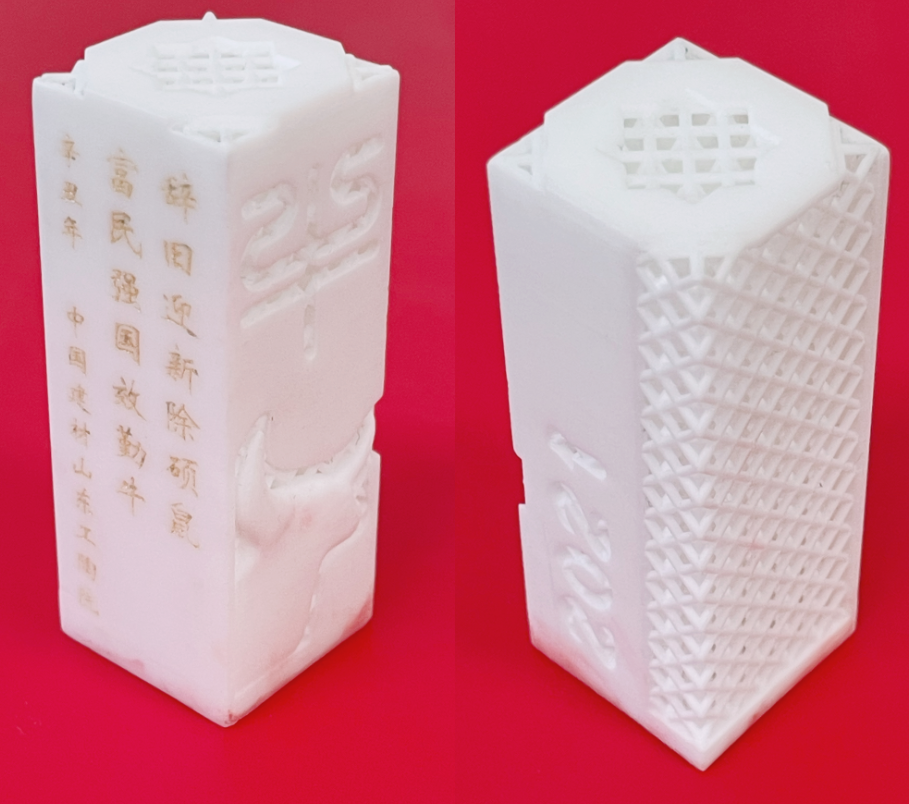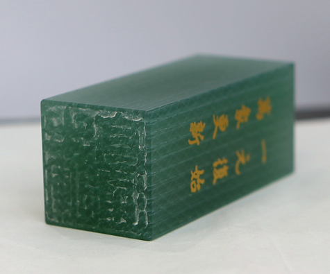 材料简介:以玻璃纤维和环氧树脂为材质,将现代科技与传统文化相融合,采用真空灌注之工艺,精工打磨,制成此印章。表面光润,色泽温和,晶莹剔透,宛若玉石,同时,结构细密,不易破损。