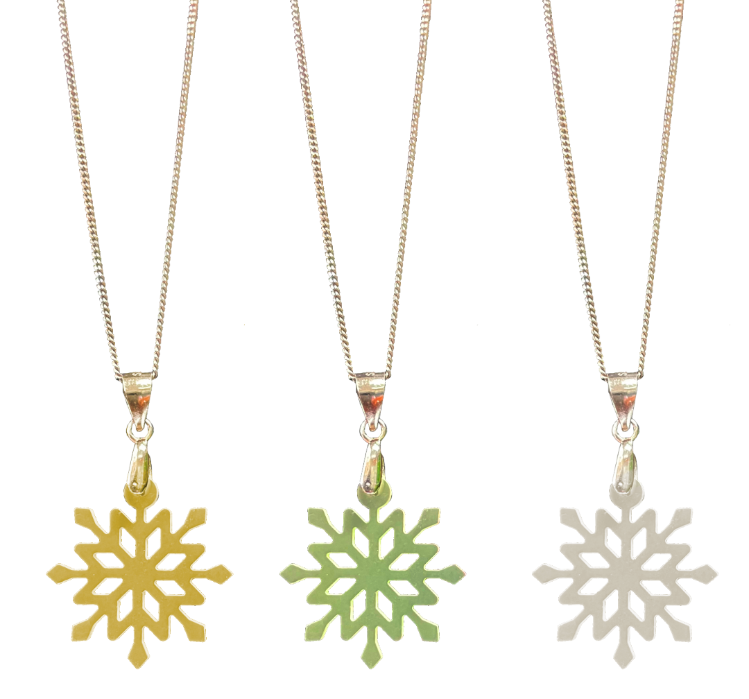 吊坠使用光纤传像材料制作,该材料由上千万乃至数亿根微米级的光学玻璃纤维构成的二维阵列传像材料,能够实现图像等比例、倒转180°、放大或缩小的高保真传输,具有低光损耗率、光学零厚度、高分辨率和高对比度等光学特性,被广泛应用于微光夜视、航空航天和生物医疗领域。为致敬2022北京冬奥会,团队设计的“雪花”光纤传像材料吊坠,贴合冬奥会主题。通过改变原材料的颜色,设计出多种颜色的“雪花”吊坠,质地晶莹剔透,与冬季奥运会举办的环境相得益彰。