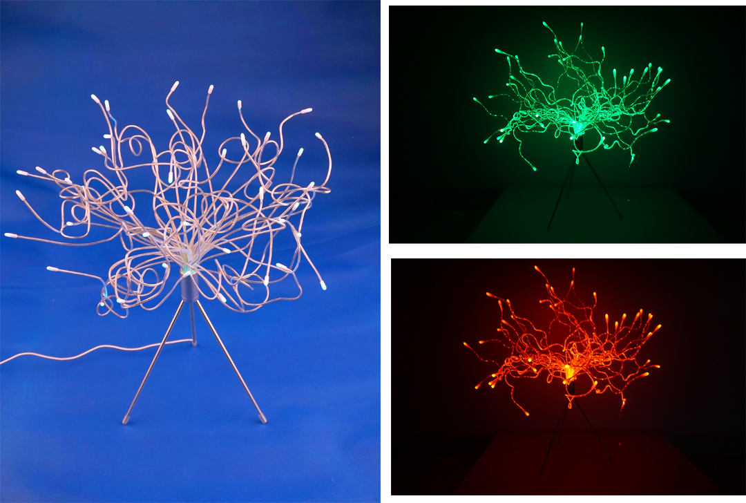 光纤灯主要由发光的塑料光纤和瓷质光源底座组成,塑料光纤和铝丝配合,柔软耐折,可随意造型定型,在长度方向上刻出需要的发光点。颜色可呈现出红、绿、蓝单色光及其变化的复合光,呈现出五光十色、美轮美奂的视觉体验。光纤一端集为一束,寓意日韩无码 所属企业紧密团结在一起,协作一心,成就事业。光纤另一端发散为无数长短不一的闪光点,寓意不同岗位的员工在各自的工作中奋力拼搏,散发出积极向上的光芒。光纤灯可以随意造型定型,象征着创新、创造,以科技引领未来,拥抱无限可能。白色瓷质底座,给人挺拔稳健、积极向上、奋发图强的感觉。