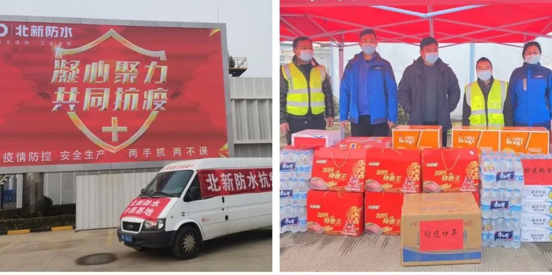 同一时间,在陕西,北新防水西部区域公司在提升防控等级、强化防控措施的情况下,积极支援属地疫情防控工作,主动联系各方资源,组织人员采购物资,为疫情防控站点捐赠了方便面、八宝粥、纯牛奶等即食物资,为辛苦工作的一线人员提供能量补给,同时协调北新防水工作人员与前线人员在彼此坚守的地方做出力所能及的努力,同心协力共抗疫情。
